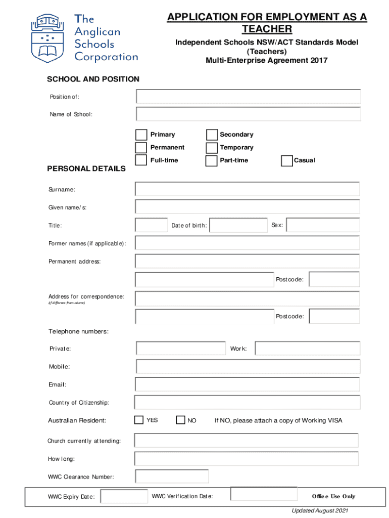 TAS Teacher 712 Permanent (to commence in 2025) The successful applicant will be registered with the New South Wales Educational Standards (NESA) and be accredited as Provisional, Proficient or an