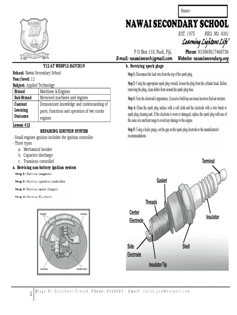 Name:NAWAI SECONDARY SCHOOL EST. 1975 P O Box 118, Nadi, Fiji. Email: nawaisecsch@gmail.com Y12 AT WHSP12BATCH19 School: Nawai Secondary School Year/level: 12 Subject: Applied Technology Strand Machines