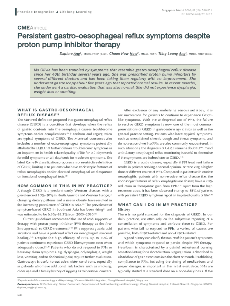 Singapore Med J 2016; 57(10): 546551 10.11622/smedj.2016167Practice Integration & Lifelong LearningCMEARTICLEPersistent gastroesophageal reflux symptoms despite proton pump inhibitor therapy Daphne
