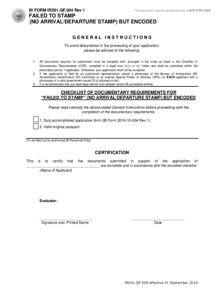 BI FORM IRD01.QF.004 Rev 1This document may be reproduced and is NOT FOR SALEFAILED TO STAMP