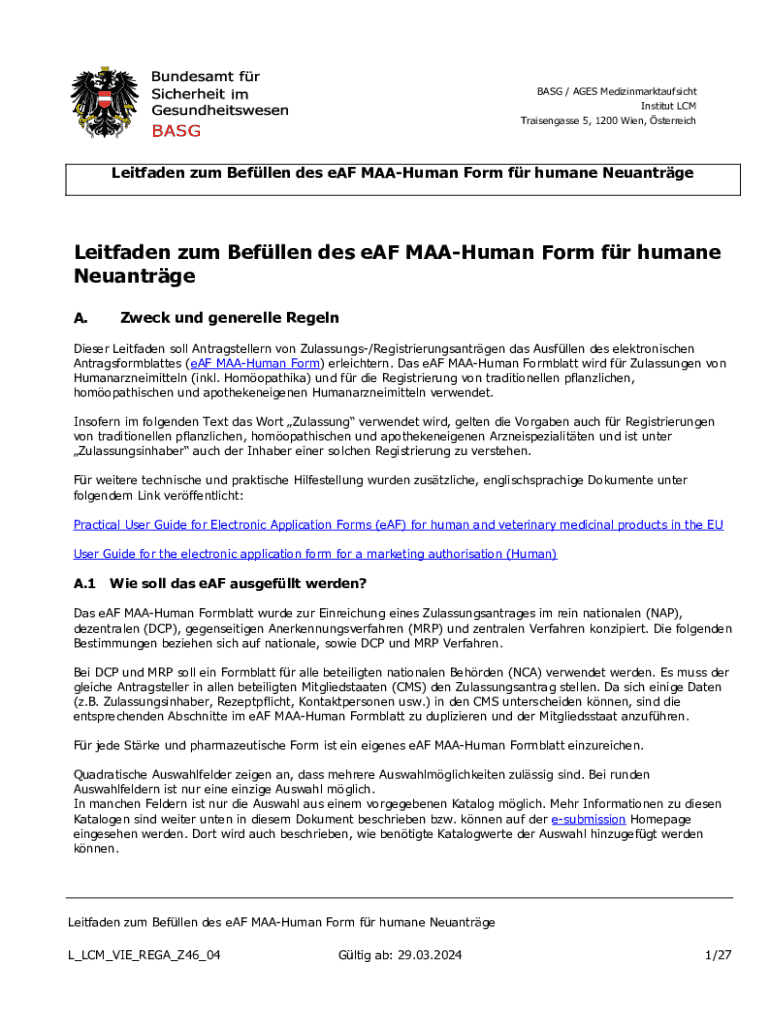 Holen Sie sich kostenlos Leitfaden zum Befllen des eAF MAA-Human Form fr humane Neuantrge
