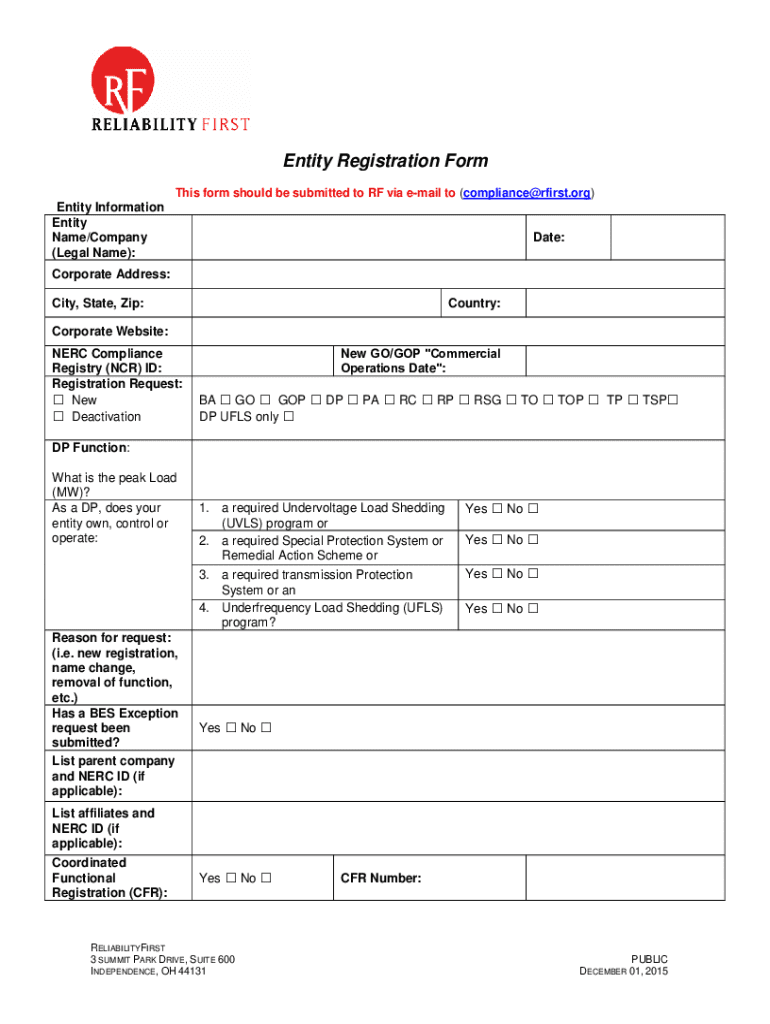This form should be submitted to RF via email to (compliance@rfirst.org)Entity Information