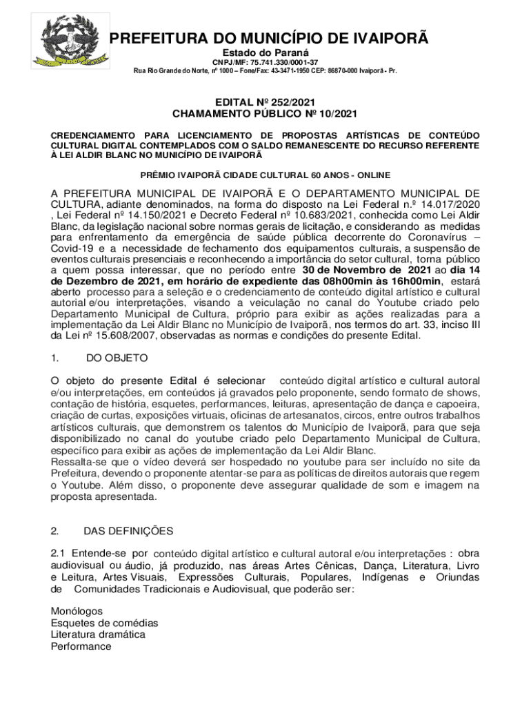 RUA Rio Grande do Norte, n 1000 One/Fax: 4334711950 CEP: 86870000 Vapor Pr.EDIT AL N 252/2021