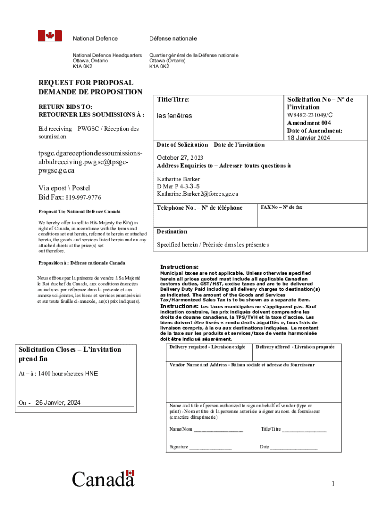 Dfense nationaleNational Defence Headquarters Ottawa, Ontario K1A 0K2Quartier gnral de la Dfense nationale Ottawa (Ontario) K1A 0K2REQUEST FOR PROPOSAL DEMANDE DE PROPOSITION RETURN BIDS TO: RETOURNER