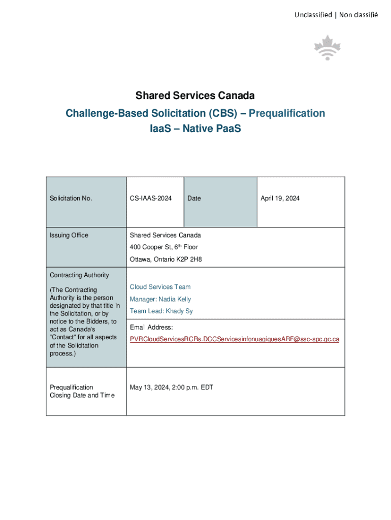 IaaS Native PaaSSolicitation No.CSIAAS2024DateIssuing OfficeS hared Services Canada April 19, 2024400