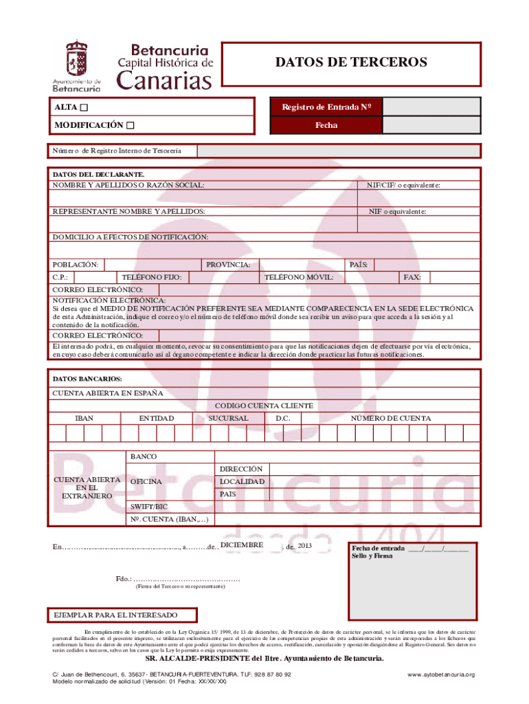 ALTARegistro de Estrada NMODIFICACINFechaNmero de Registro Intern ode Tesorera
