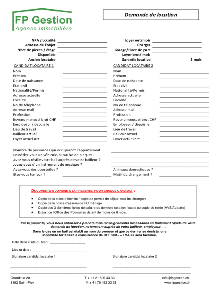 Remplissez le formulaire de demande de location avec vos informations personnelles.