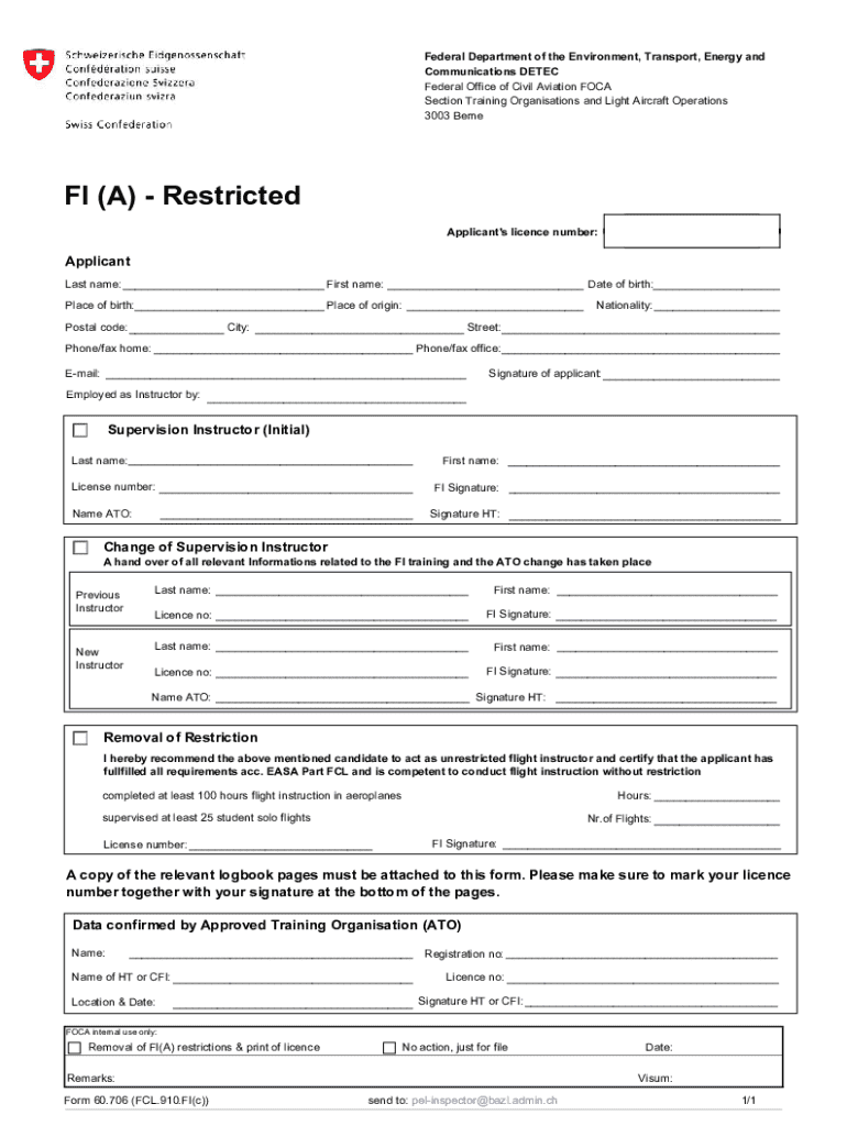 Federal Department of the Environment, Transport, Energy and Communications DETECT Federal Office of Civil Aviation FOCAL Section Training Organizations and Light Aircraft Operations 3003 Benefit