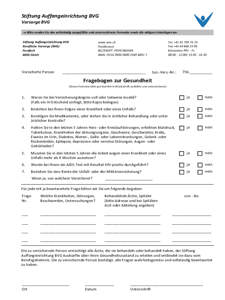 Die Stiftung Auffangeinrichtung BVG Home kann online ausgefüllt und eingereicht werden. Es ist wichtig, alle erforderlichen Informationen korrekt und vollständig anzugeben.