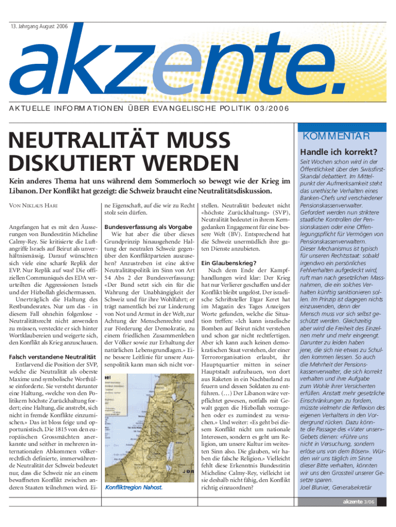 13. Charging August 2006A K T U E L L E I N F O R M AT I O N E N B E R E VA N G E L I S C H E P O L I T I K 0 3 / 2 0 0 6NEUTRALITT MUSS