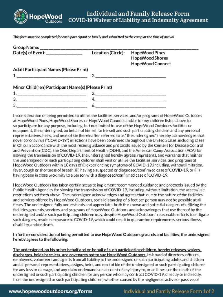 Individual and Family Release FormCOVID19 Waiver of Liability and Indemnity Agreement