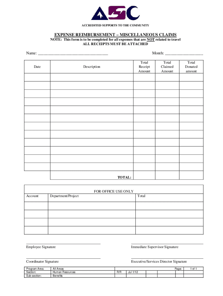 ACCREDITED SUPPORTS TO THE COMMUNITYEXPENSE REIMBURSEMENT MISCELLANEOUS CLAIMS