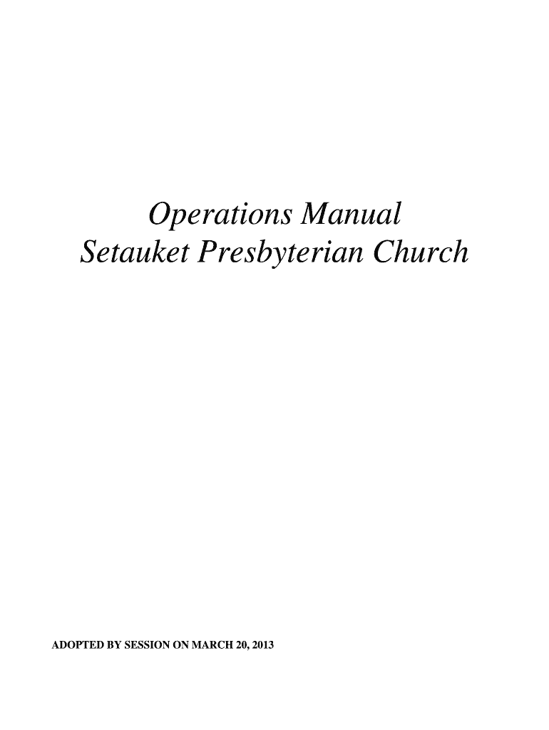 Operations Manual Stake Presbyterian Church ADOPTED BY SESSION ON MARCH 20, 2013, TABLE OF CONTENTS A. PREAMBLE ..................................................................................................................