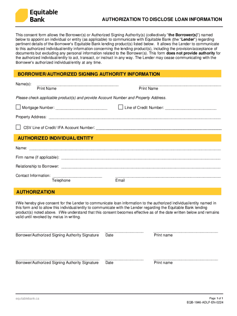 Authorization to disclose loan is a legal document that allows a lender to share information about a borrower's loan with a third party.