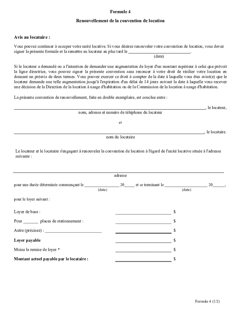 Obtenir le gratuit Renouvellement de la convention de location. c. R119 de la C.P.L.M.
