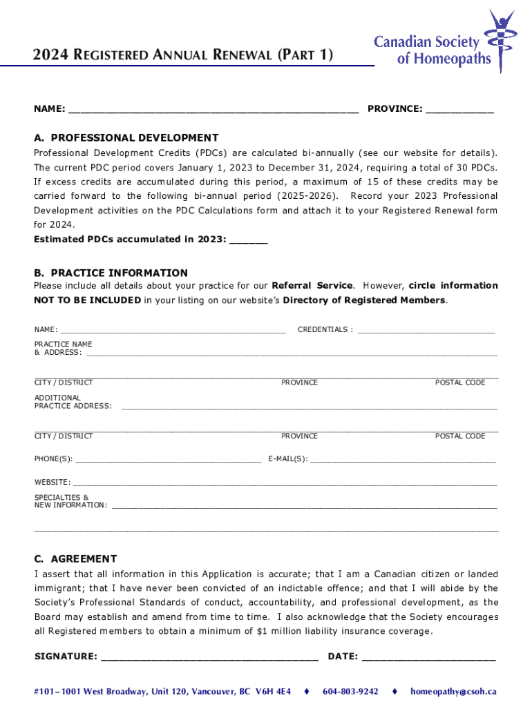 2024 REGISTERED ANNUAL RENEWAL (PART 1)NAME: ___PROVINCE: ___A. PROFESSIONAL DEVELOPMENT Credits (PCs) are calculated biannually (see our website for details).