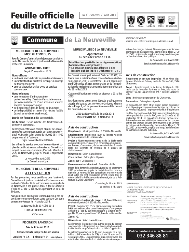 Seville officially Du district de La Vaudeville No 30 Vended 23 AOT 2013Communei de La Vaudeville MUNICIPALITY DE LA VAUDEVILLE MILE AU CONCOURSE Pour LE Center animation de Tennessee Du district