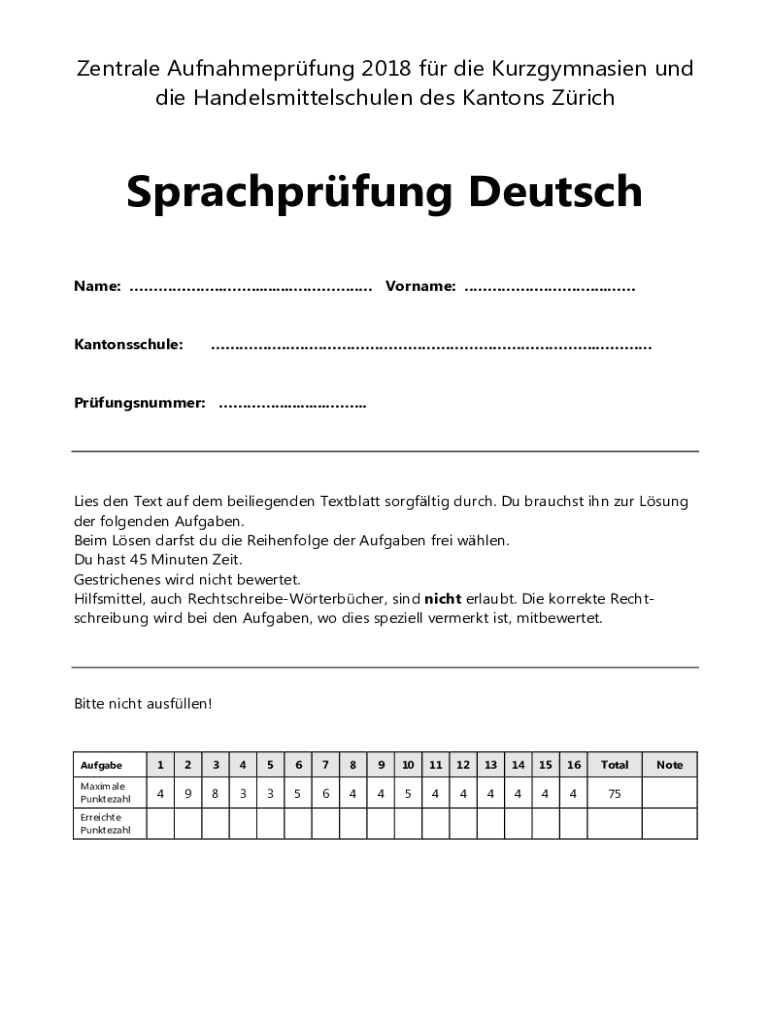 Central Aufnahmeprfung 2018 fr die Kurzgymnasien UND