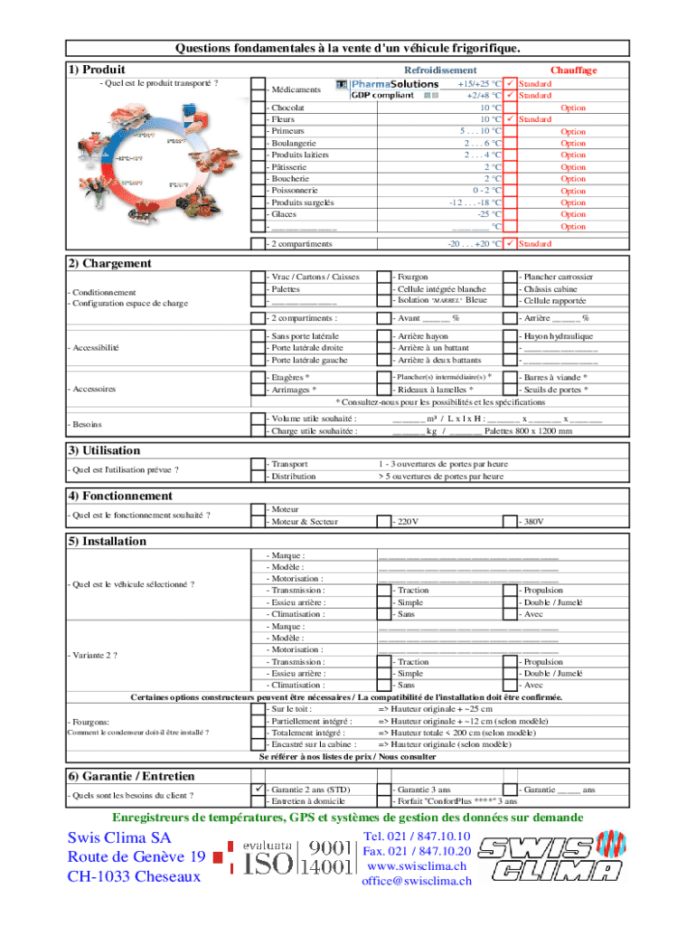 Questions fundamentals la vented\'un vehicle frigorifique. 1) Product Que lest LE product transport ? RefroidissementChauffage Chocolate Flours Primers Boulangerie Products liters Patisserie Gaucherie