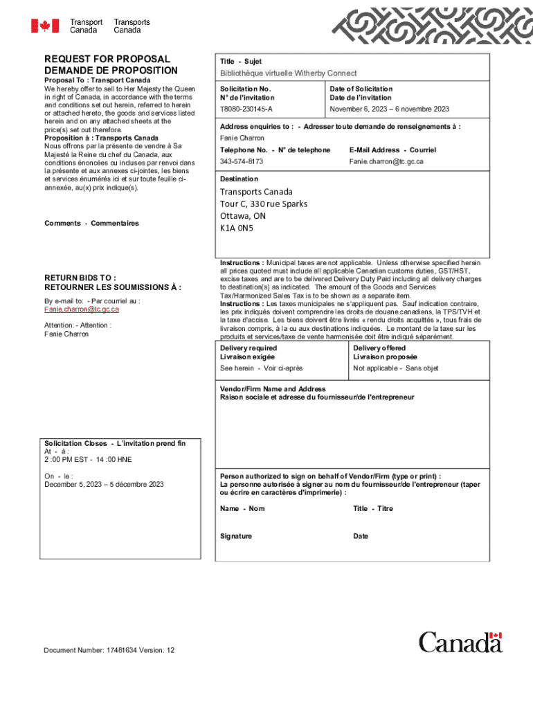 Les fournisseurs potentiels intéressés doivent déposer t8080-230145 - rfp.