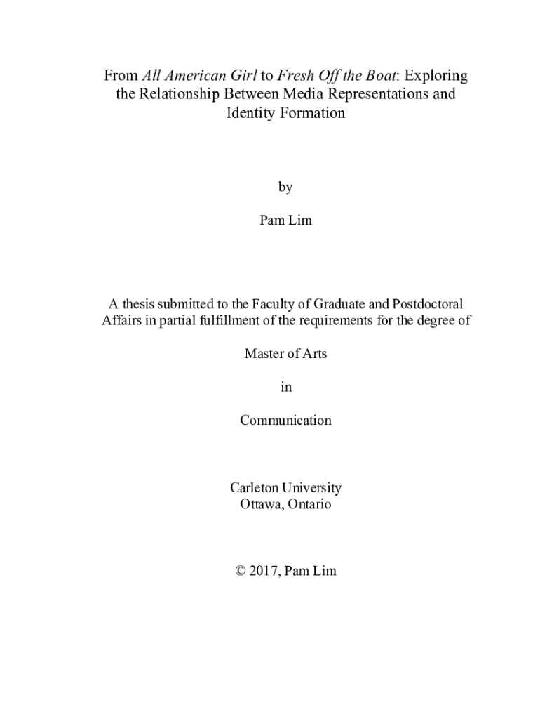 From All American Girl to Fresh Off the Boat: Exploring the Relationship Between Media Representations and Identity Formation by Pam Lima thesis submitted to the Faculty of Graduate and Postdoctoral