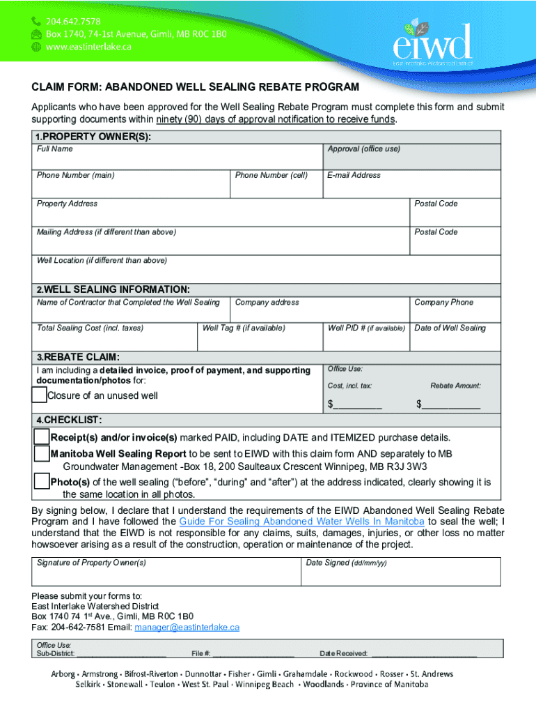 CLAIM FORM: ABANDONED WELL SEALING REBATE PROGRAM