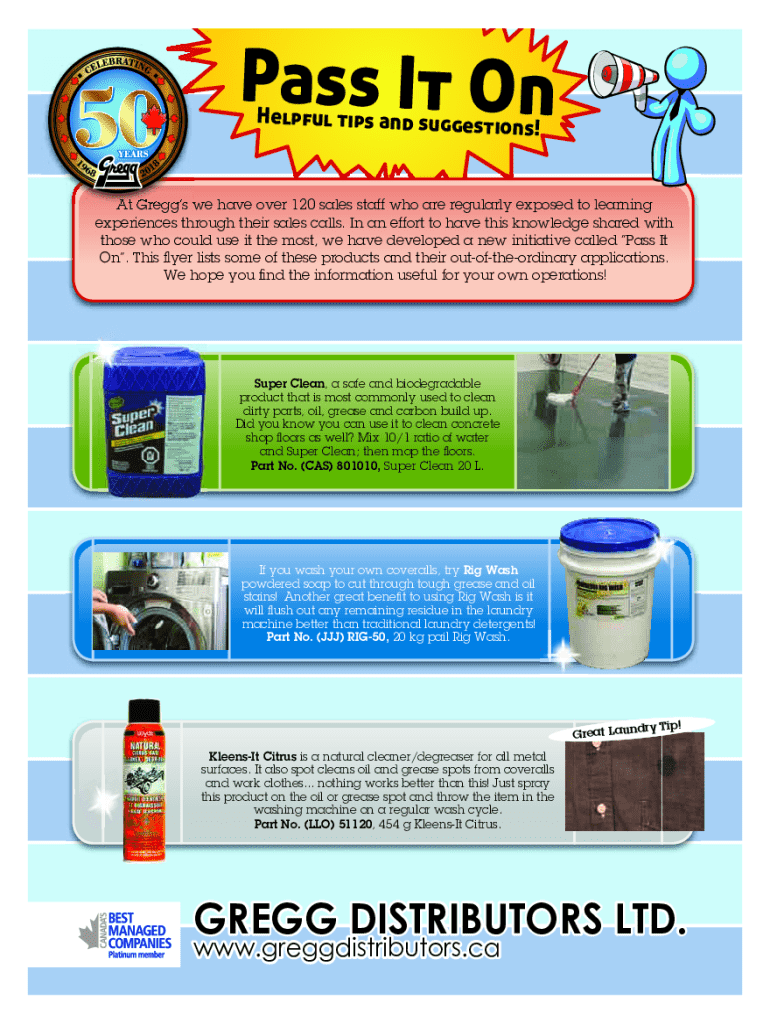Pass It On Helpful tips and suggestions!At Greggs we have over 120 sales staff who are regularly exposed to learning experiences through their sales calls. In an effort to have this knowledge shared