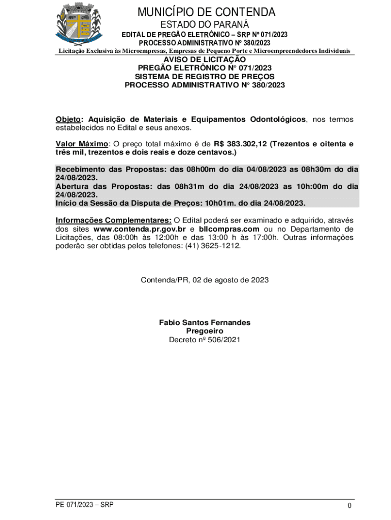 PROCESS ADMINISTRATIVE N 380/2023Licitao Exclusive s Microempresas, Empress