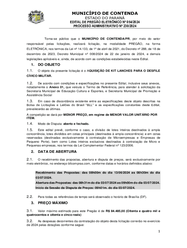 PROCESS ADMINISTRATIVE N 230/2024Tornase public Que o MUNICIPAL DE CONTEND/PR, POR Mao do sector