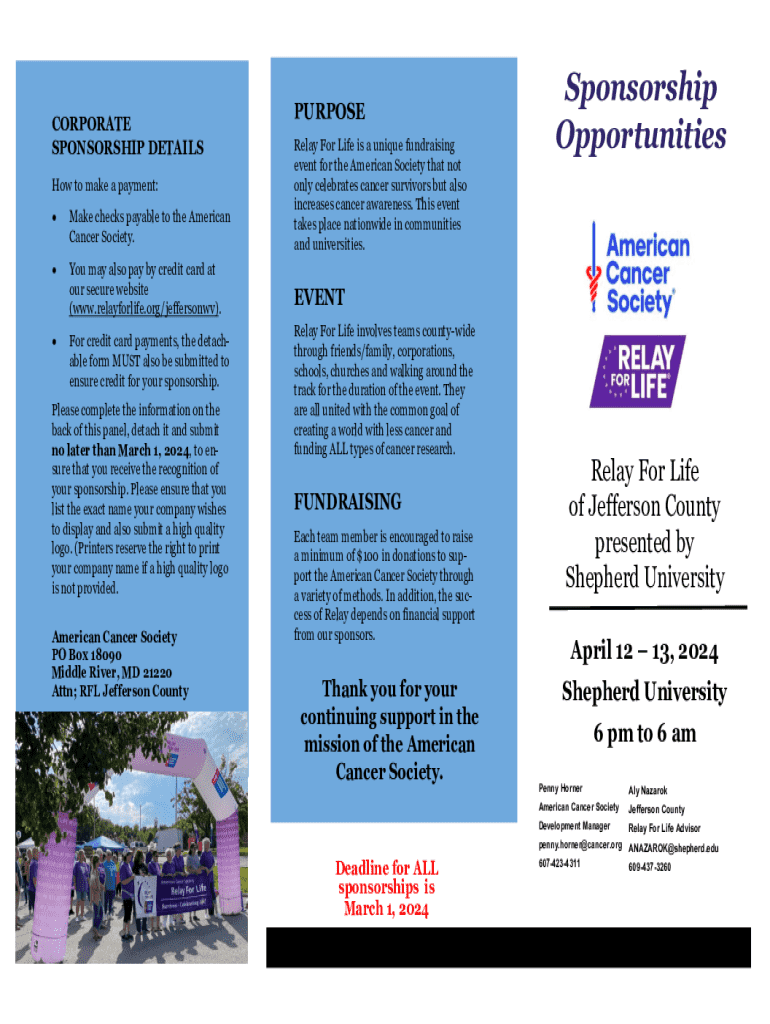 SPONSORSHIP DETAILSPURPOSEMake checks payable to the American