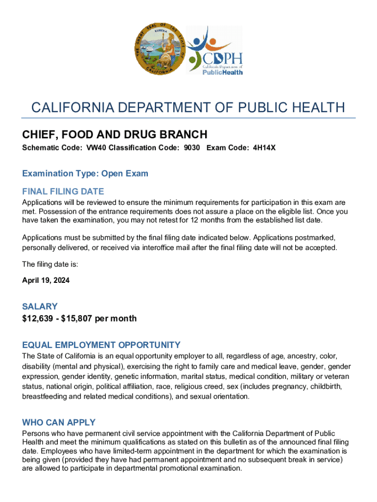 CHIEF, FOOD AND DRUG BRANCHSchematic Code: VW40 Classification Code: 9030 Exam Code: 4H14XExamination Type: Open Exam