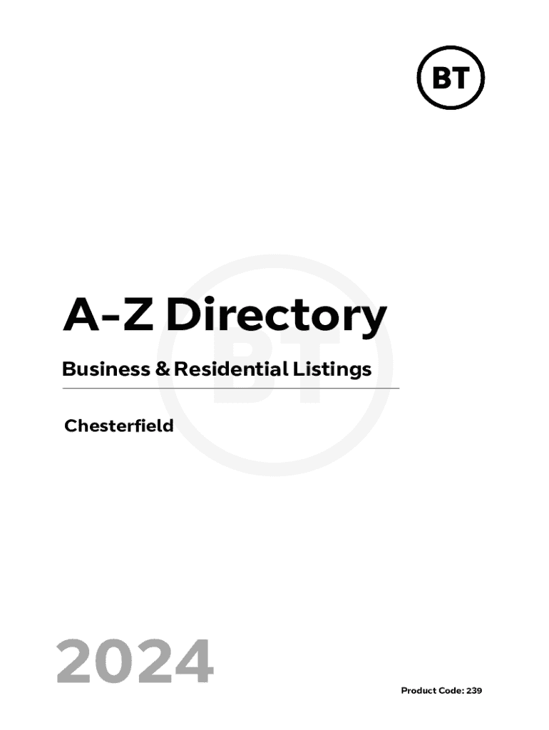 AZ Directory Business & Residential Listings Chesterfield2024Product Code: 239Information listed within the AZ section has been supplied by each Communication Provider (service provider) and is published