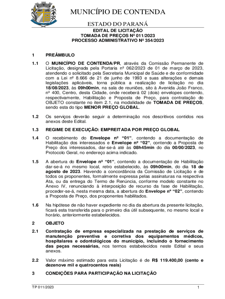 PROCESS ADMINISTRATIVE N 354/20231PREMBULO1.1O MUNICIPAL DE CONTEND/PR,