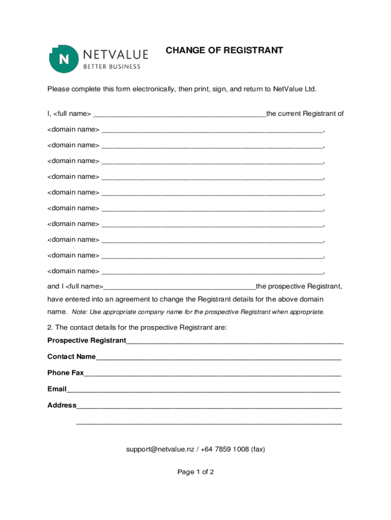 CHANGE OF REGISTRANTPlease complete this form electronically, then print, sign, and return to Devalue Ltd.