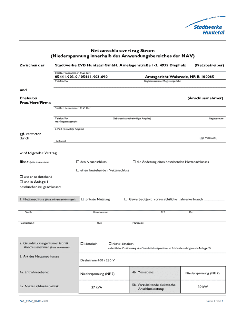 So füllen Sie netzanschlussvertrag strom niederspannung innerhalb aus