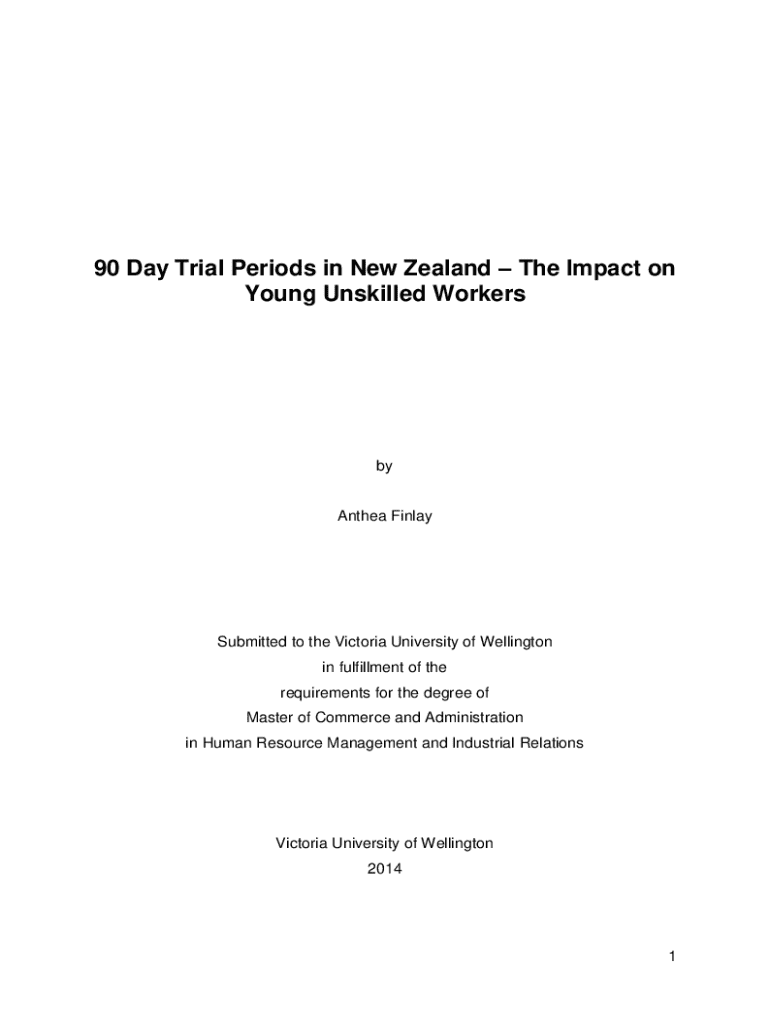 90 Day Trial Periods in New Zealand The Impact on Young Unskilled WorkersbyAnthea FinlaySubmitted to the Victoria University of Wellington in fulfillment of the requirements for the degree of Master