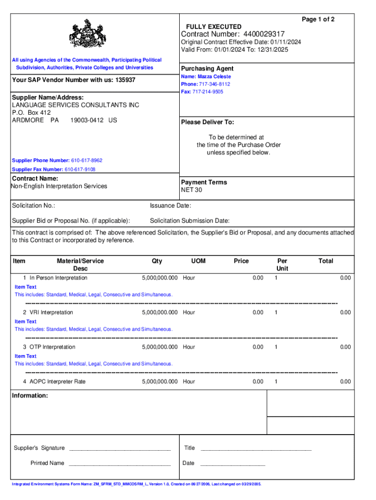 Page 1 of 2 FULLY EXECUTEDContract Number: 4400029317 Original Contract Effective Date: 01/11/2024 Valid From: 01/01/2024 To: 12/31/2025 All using Agencies of the Commonwealth, Participating Political