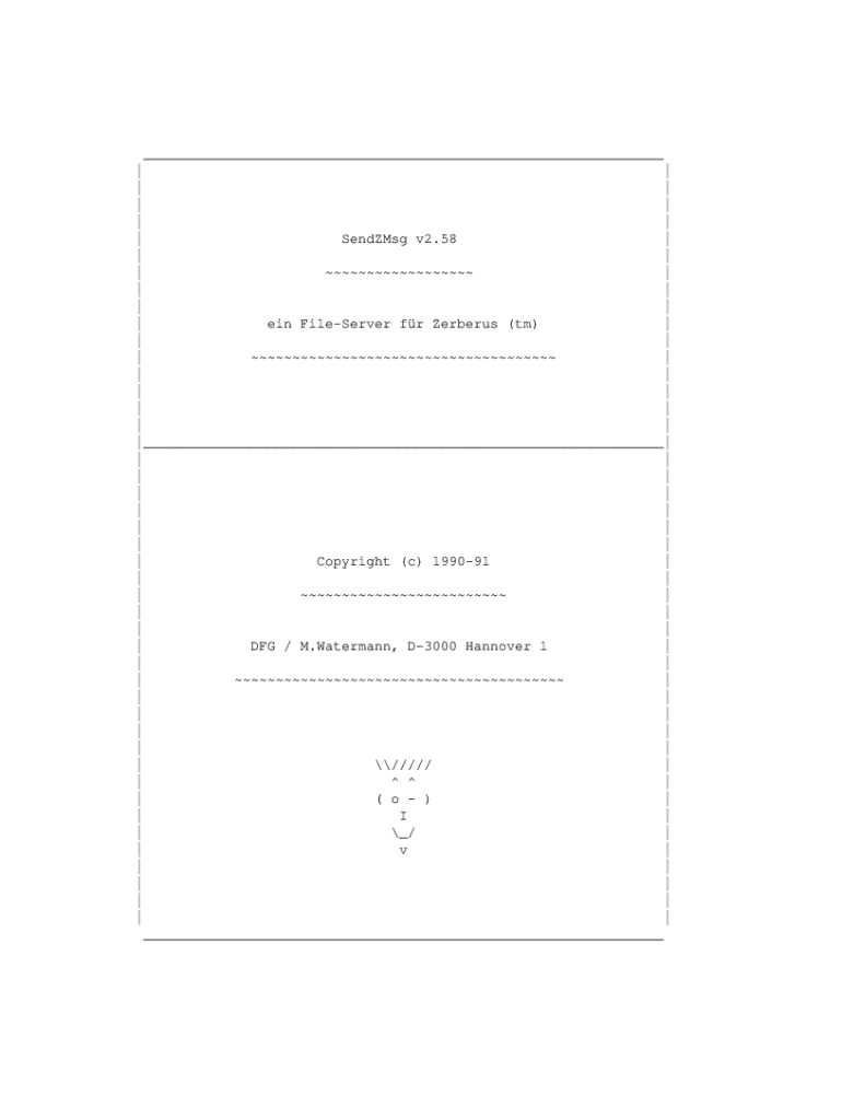 ___ | | | | | | | | | Sending v2.58 | | | | | | | | | | an Timeserver for Cerberus (TM) | | | | | | | | | | | | | |___| | | | | | | | | | | | | | Copyright (c) 199091 | | | | | | | | | | DFG / M.