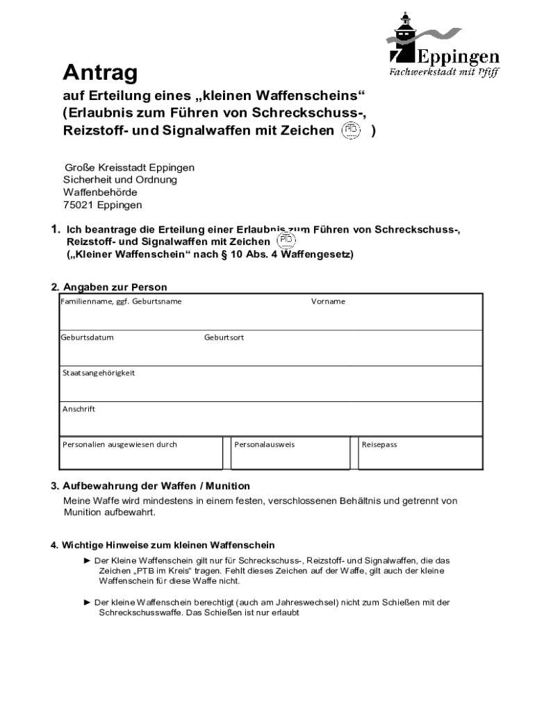 Und Signalwaffen gem10 abs ist ein Formular zur Meldung von Signalwaffen gemäß Abschnitt 10 des deutschen Waffengesetzes.