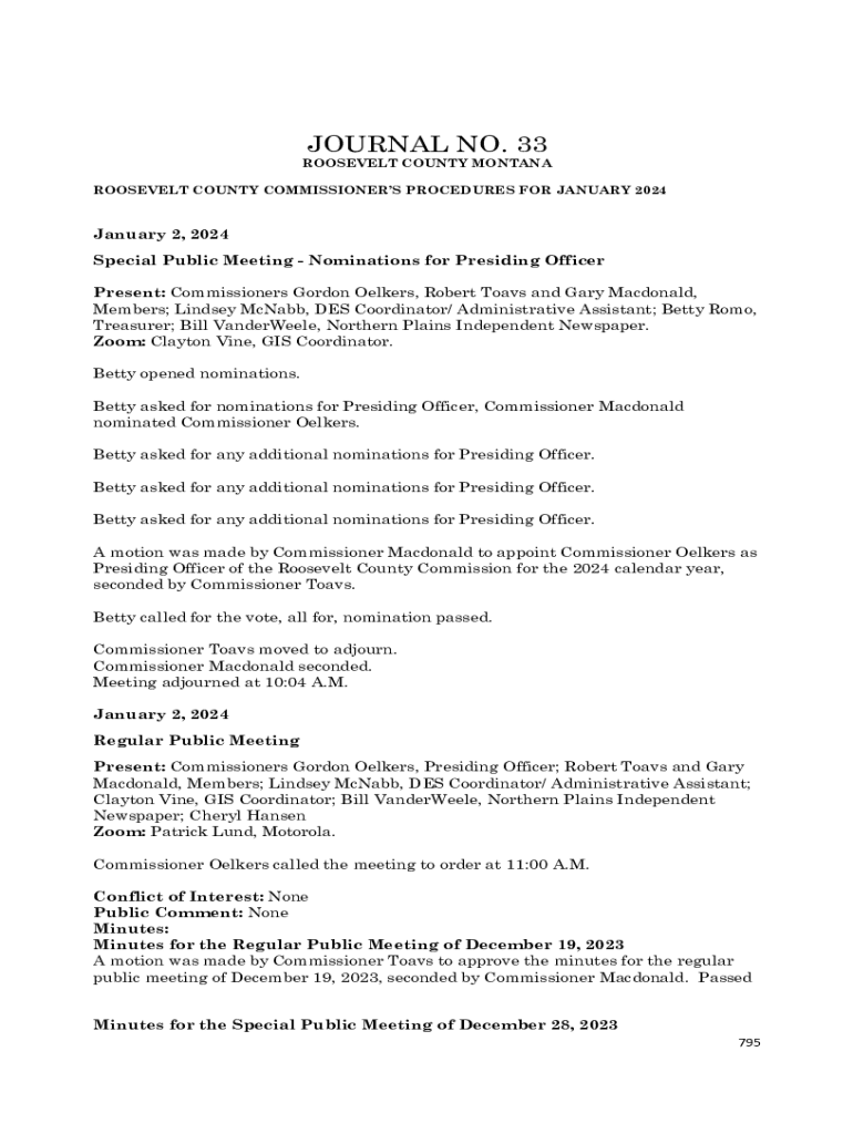 JOURNAL NO. 33ROOSEVELT COUNTY MONTANA