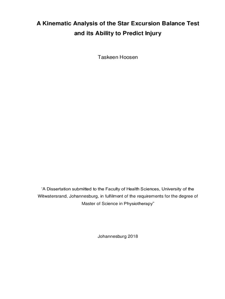 A Kinematic Analysis of the Star Excursion Balance Test and its Ability to Predict InjuryTaskeen HoosenA Dissertation submitted to the Faculty of Health Sciences, University of the Witwatersrand,