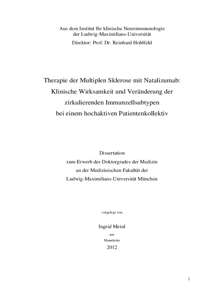 Director: Prof. Dr. Reinhard HohlfeldTherapie her Multiple Scleroses MIT Omalizumab: