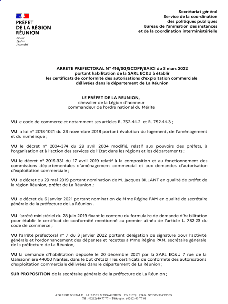 et de la coordination interministrielleARRETE ELECTORAL N 416/SG/SCOPE/BAII Du 3 Mars 2022