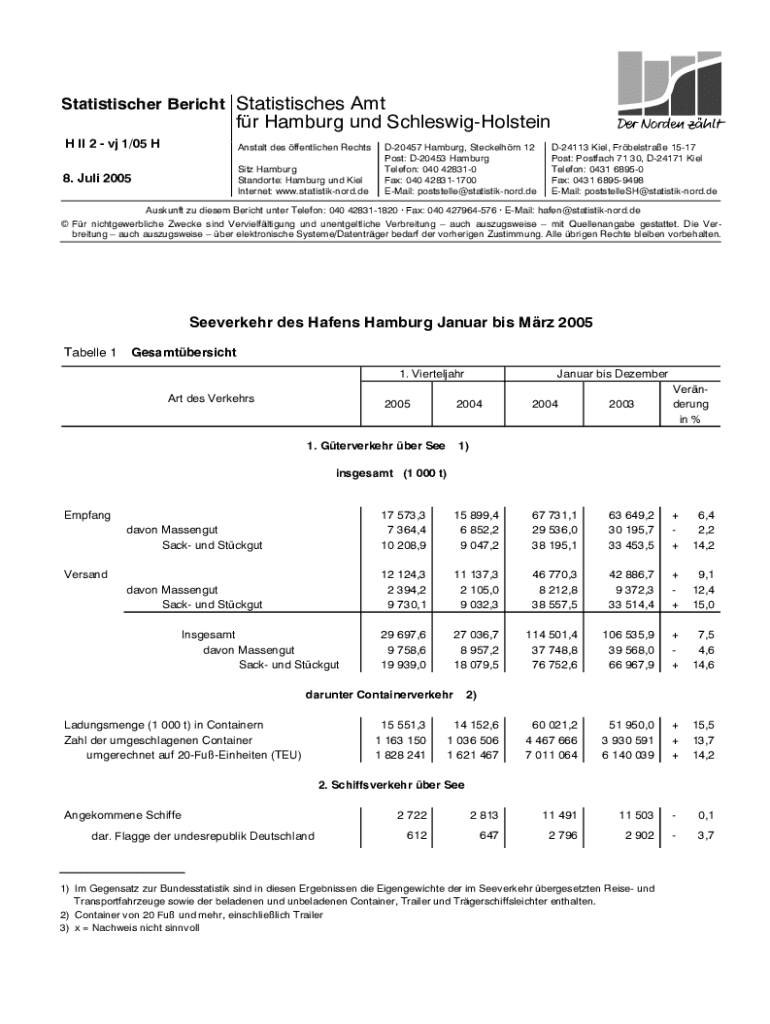 Statistischer Bright Statistics Amt fr Hamburg UND Schleswig-Holstein II 2 VJ 1/05 Constant DES ffentlichen Rechts8. July 2005Sitz Hamburg