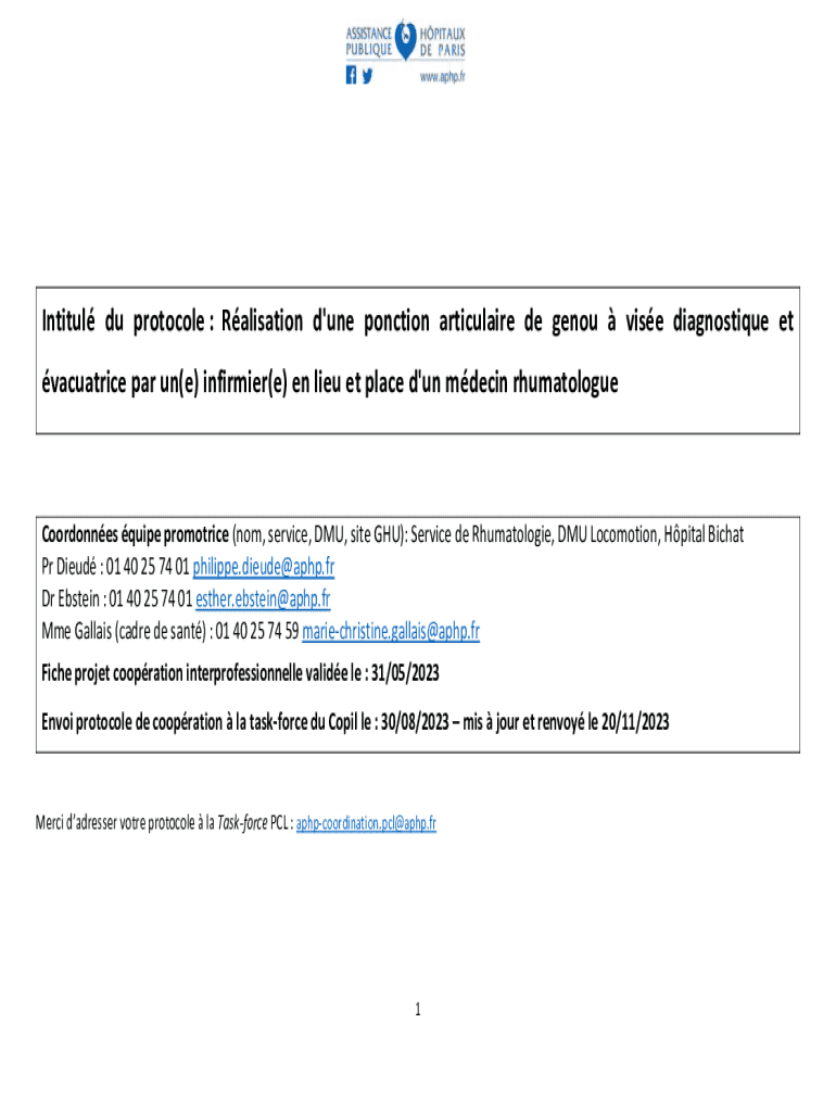 Obtenir le gratuit Intitul du protocole : Ralisation d'une ponction articulaire de ... - cme aphp