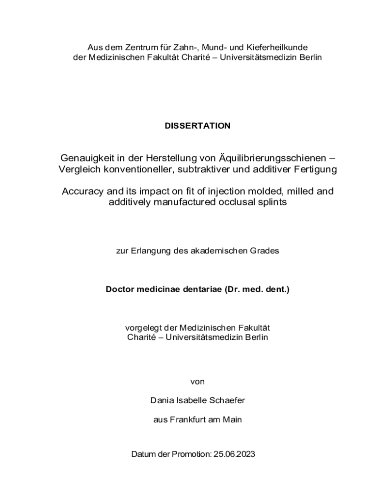 her Medizinischen Faculty Chart Universittsmedizin BerlinDISSERTATIONGenauigkeit in her Herstellung on quilibrierungsschienen
