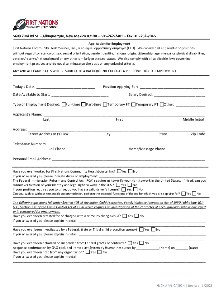 5608 Zuni Rd SE Albuquerque, New Mexico 87108 5052622481 Fax 5052627045 Application for Employment First Nations Community HealthSource, Inc., is an equal opportunity employer (EEO). We consider all