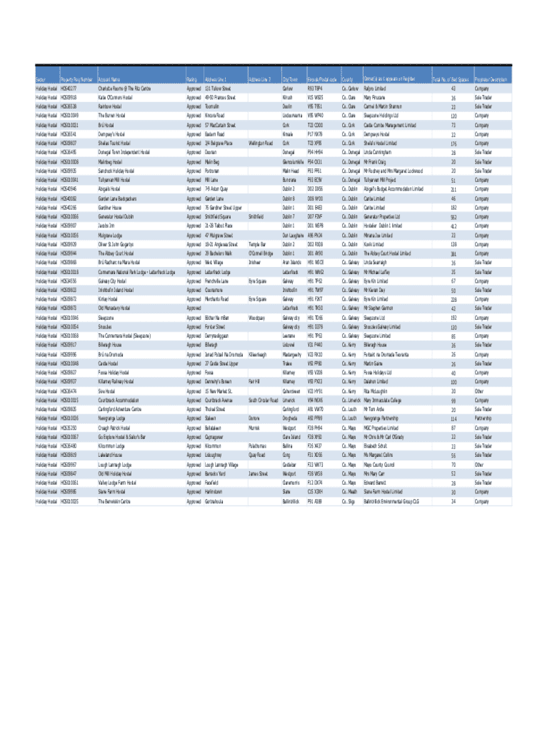 Company4950 Frances StreetKilrushV15 W825Co. Clare Mary Finucane36Sole