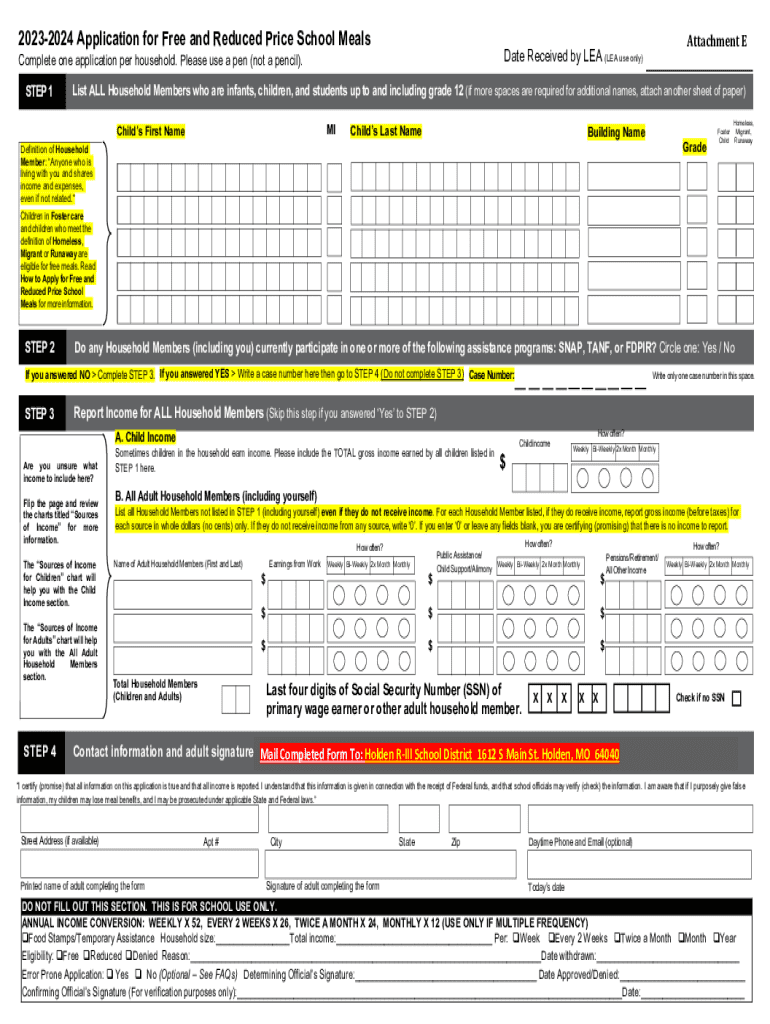 STEP 1Attachment Date Received by LEA (LEA use only)Complete one application per household. Please use a pen (not a pencil). List ALL Household