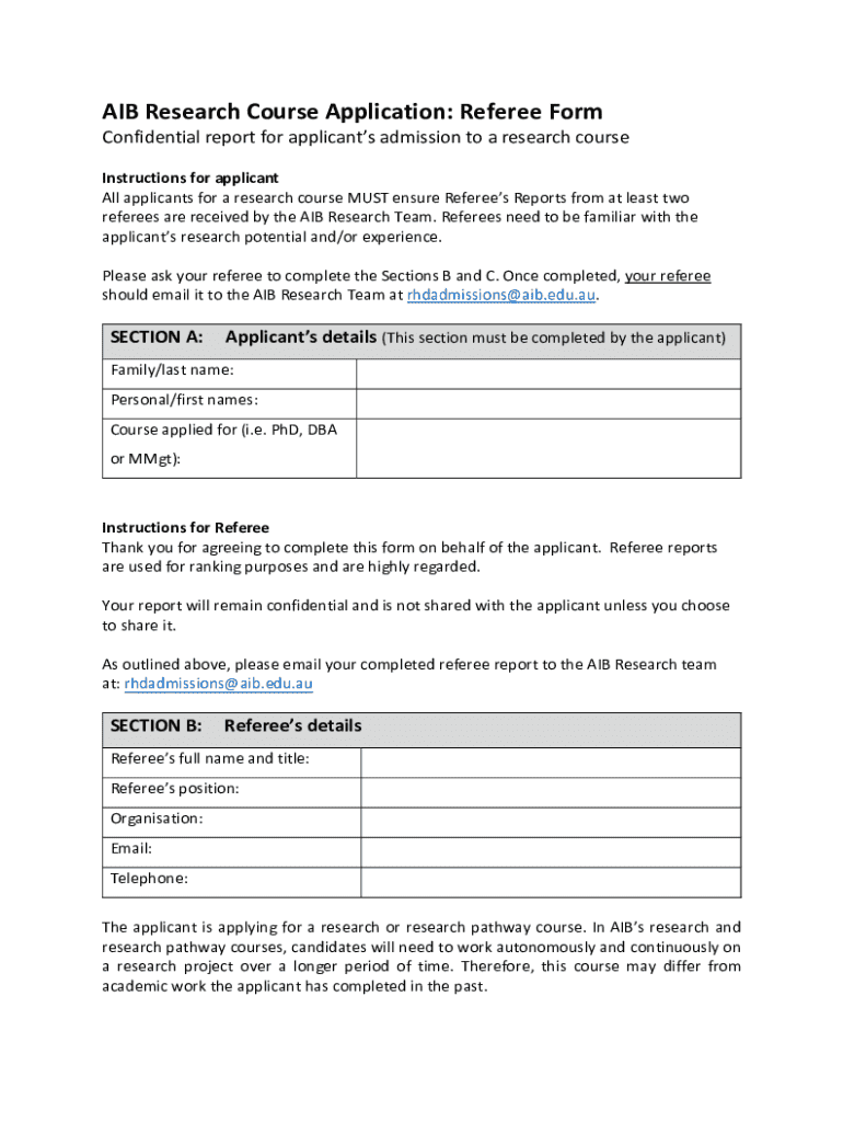 Get the free AIB Research Course Application: Referee Form